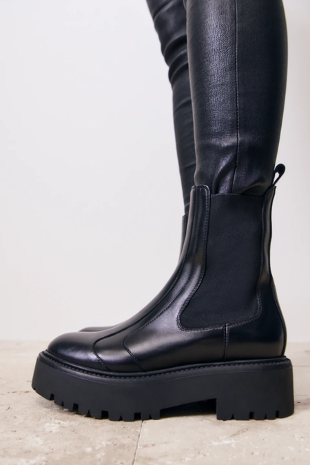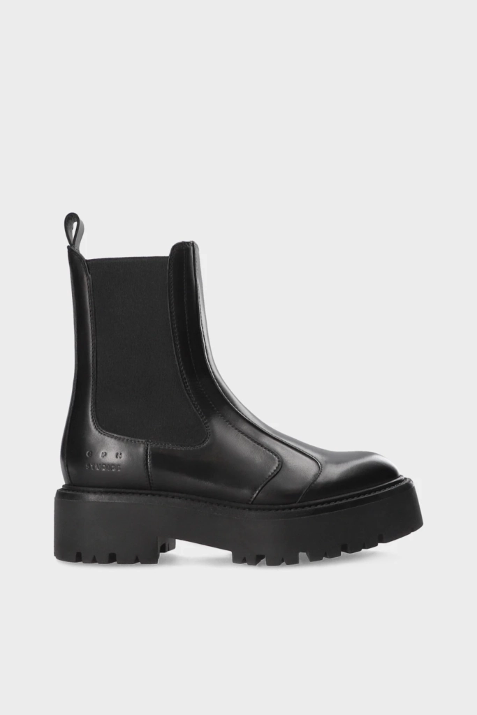 In Schwarz. Reduziert auf das Wesentliche, mit einem Hauch rustikalem Charme: Dieser Chelsea Boot vereint skandinavische Schlichtheit mit urbaner Lässigkeit. Weiches Glattleder trifft auf markante Profilsohle – für Stabilität und Komfort im Alltag. Die elastischen Einsätze und die dezente Zuglasche sorgen für unkompliziertes An- und Ausziehen.