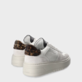 In Weiß & Leo. Ein cleaner Sneaker mit überraschendem Detail. Gefertigt aus einem hochwertigen Leder-Mix in klassischem Weiß, bringt dieser Schuh ruhige Stärke in jeden Look. Die schwarz abgesetzte Zunge setzt einen klaren Kontrast, während das Leo-Detail an der Ferse für einen subtil wilden Akzent sorgt – zurückhaltend, aber nicht zu übersehen. Feine Branding-Details auf Zunge und an der Seite unterstreichen den minimalistischen Charakter.