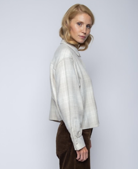 8646-157330FARBNAMEgrey checkCOLOR NO / FARBNUMMER177ARTIKELBEMERKUNGgarment washedARTIKELBESCHREIBUNGBoxy Hemdbluse, leicht ausgestellt